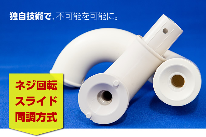 ピッチ数などについては、この技術を編み出してから積み上げた、膨大なデータとノウハウになります。また設計段階でも、ネジ回転スライド同調方式に合わせた、専用の設計思想が必要となります。